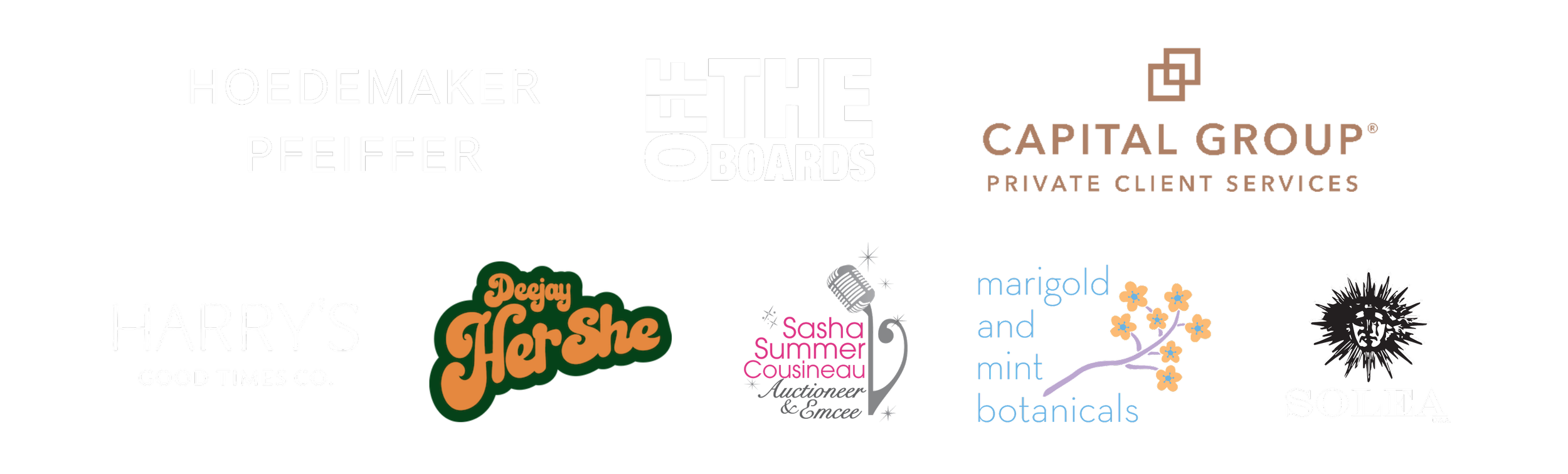 DJ Hershe, Harry's Good Times, Kat Larson, Marigold & Mint, Revel Rouser Events, Solea Wine